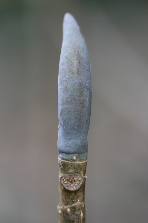 大晦日 アジサイ Hydrangea sp. (アジサイ科)の冬芽と葉痕です。 ホオノキ Magnolia obovata (モクレン科)の冬芽と葉痕です。 ロウバイ Chimonanthus praecox (ロウバイ科)が咲いています。